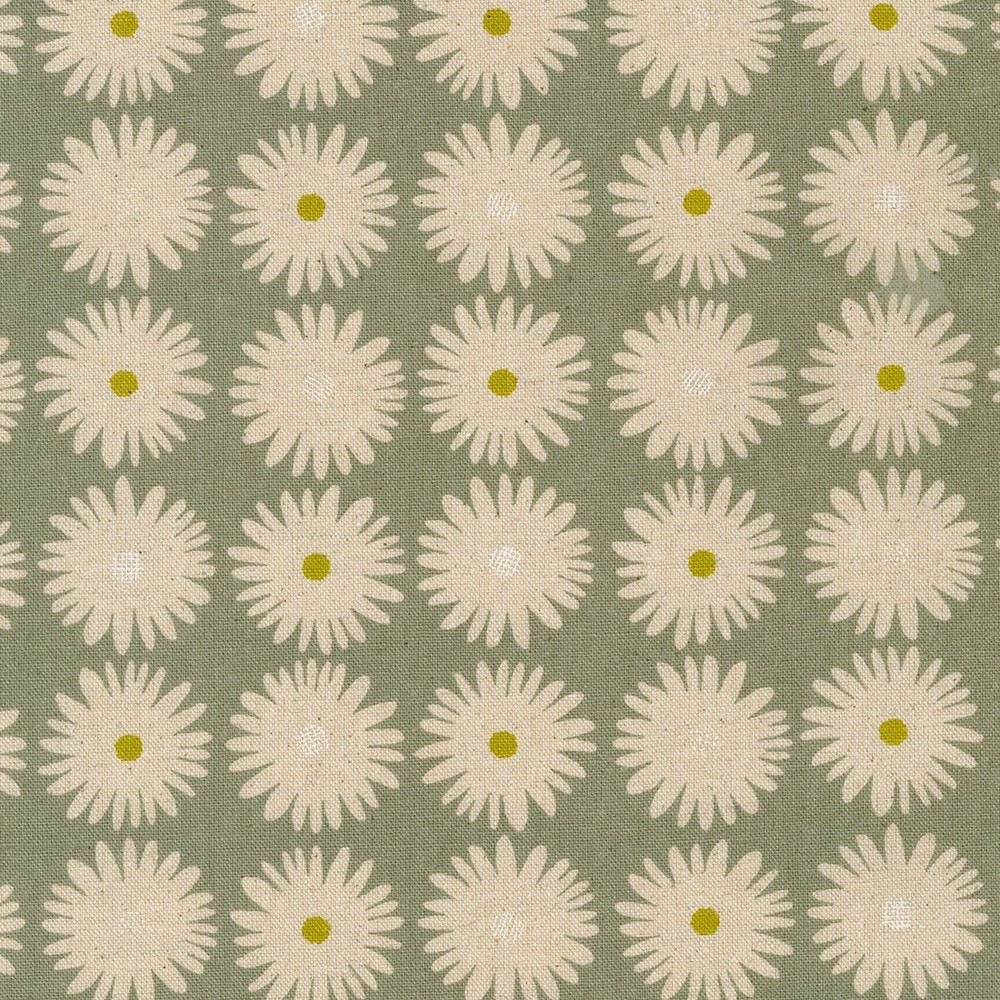 Cotton Flax Prints–Modern Natural Daisies on Lime Background with Green dots–Japanese Designs by Sevenberry