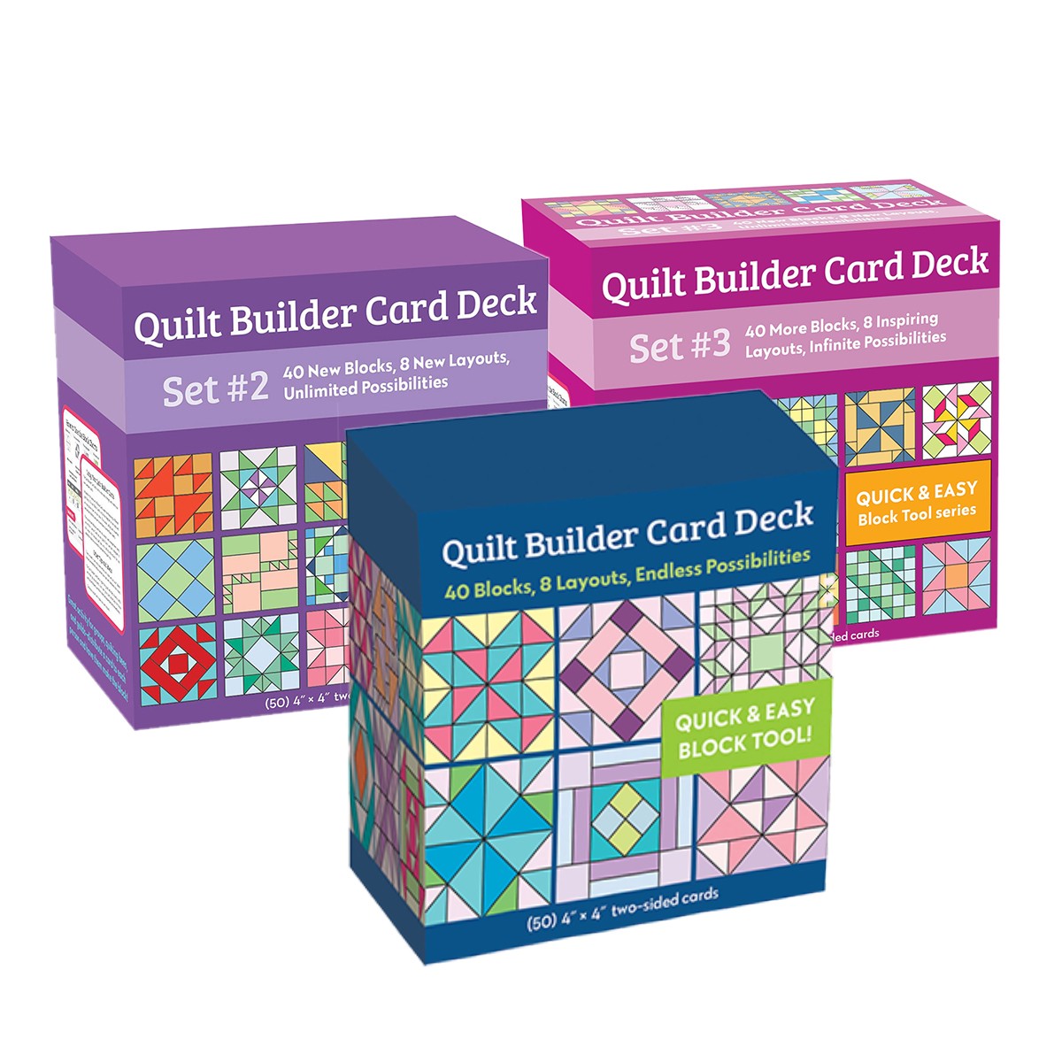 This is third set of the bestselling Quilt Builder Card Deck series! This new collection features 40 quilt blocks and eight quilt layouts.