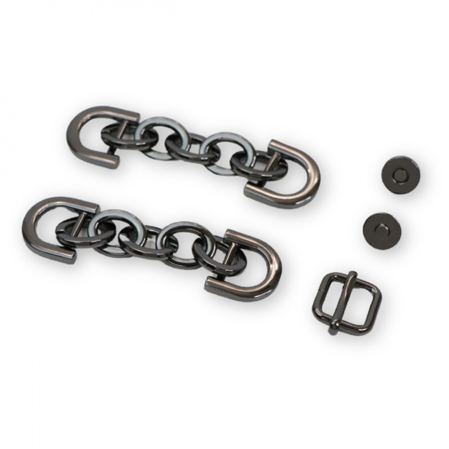 Included: Two, 1/2in Chain Strap Connector; One, 1/2in Slider Buckle; and One, 3/4in Magnetic Snap.