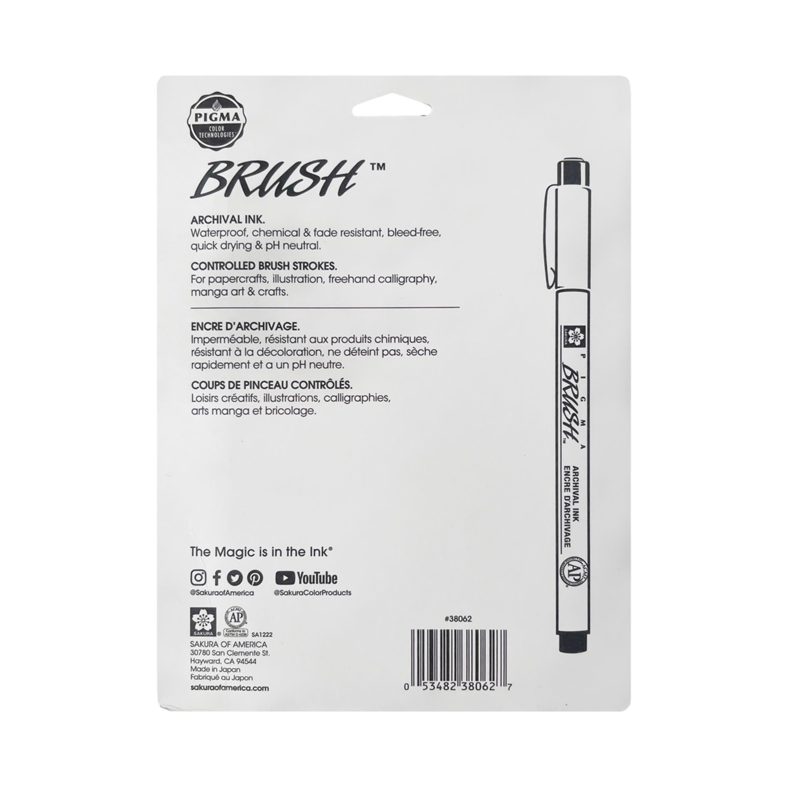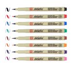 What a Dream! Writes like a pen and paints a like brush – two methods in one elegant tool. Swirls, doodles, fine lines, and broad brush strokes are possible with this flexible brush-tipped pen. Pigma Brush is comfortable to hold and responds to instant changes in pressure or direction. Vivid, fresh color enhances hand made compositions and conveys personality, style or feelings. Includes one each of black, green, red, blue, brown, purple, orange, & rose.