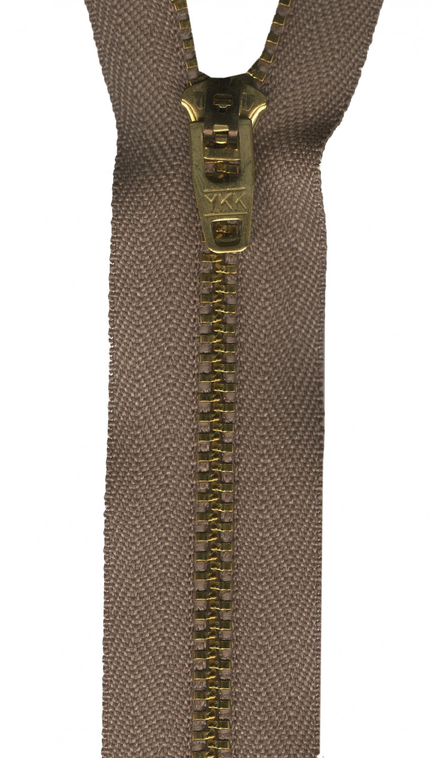 Jeans Zipper are size 4 stamped brass metal teeth on a 100% polyester tape in popular jeans colors. Strong durable with a locking low profile slider they are specially designed for a fly front application in jeans and work pants.