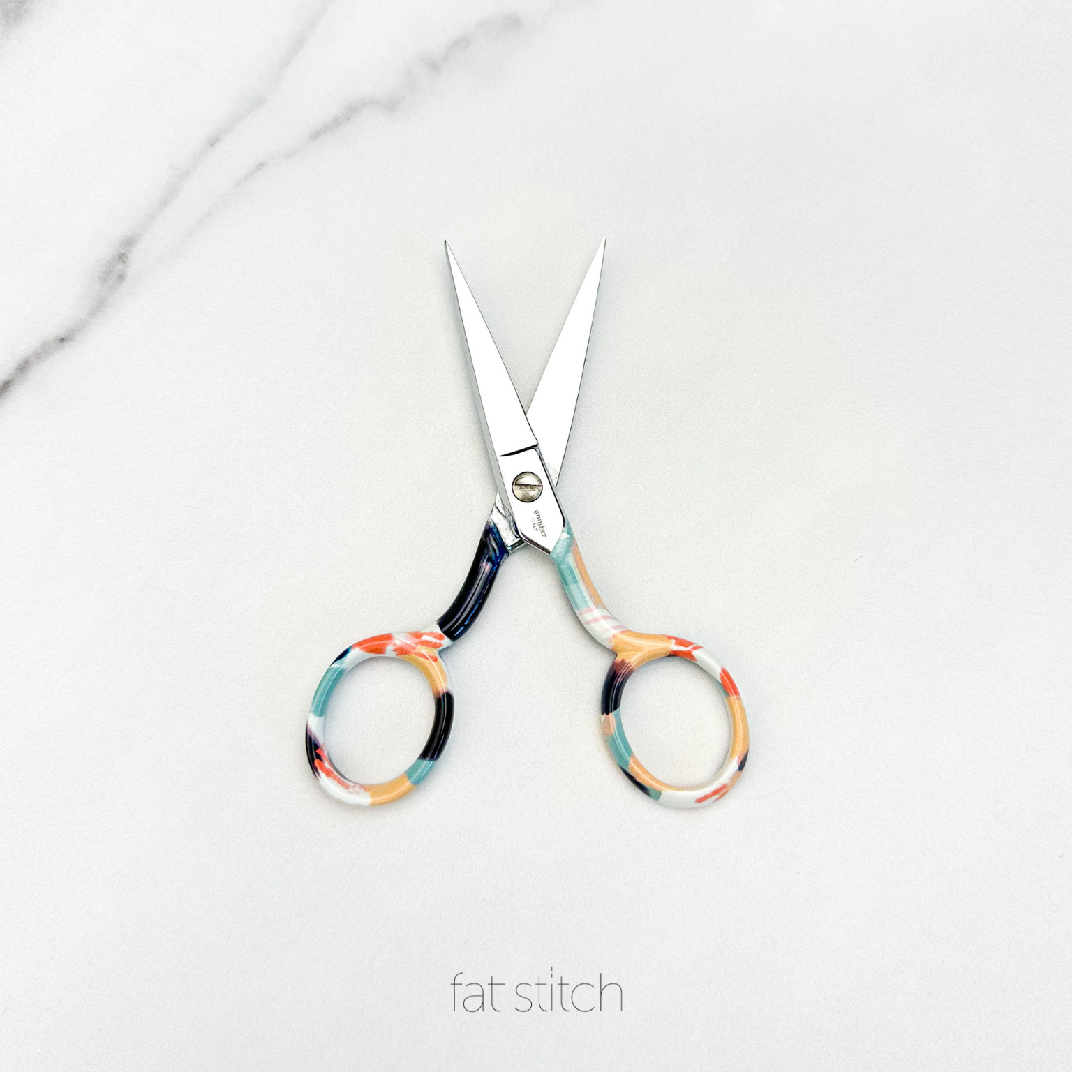 These are a classic stainless steel embroidery scissors that cut beautifully. They are colorful and elegant made in a one-of-a-kind style, from Gingher’s “Rynn” Designer Series.