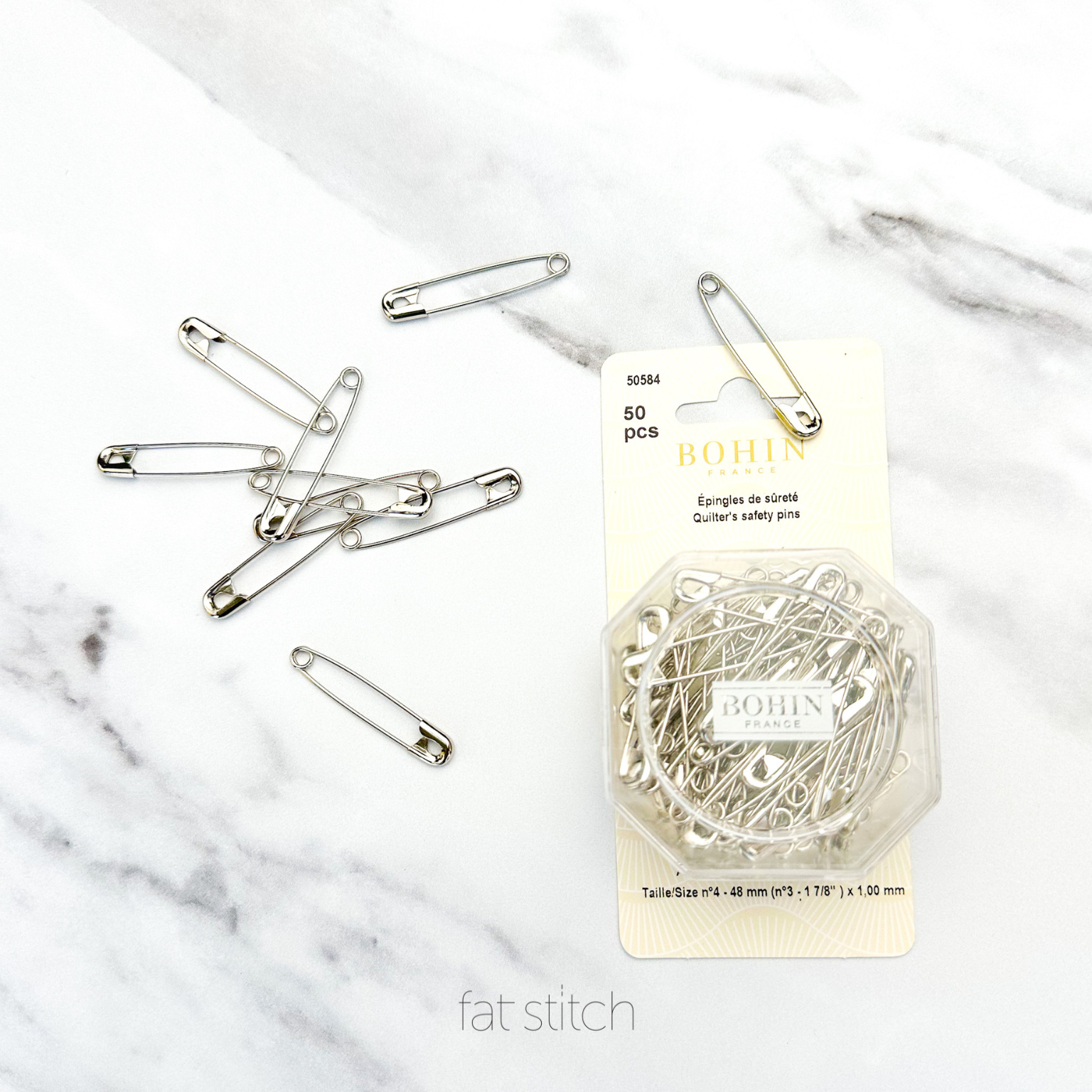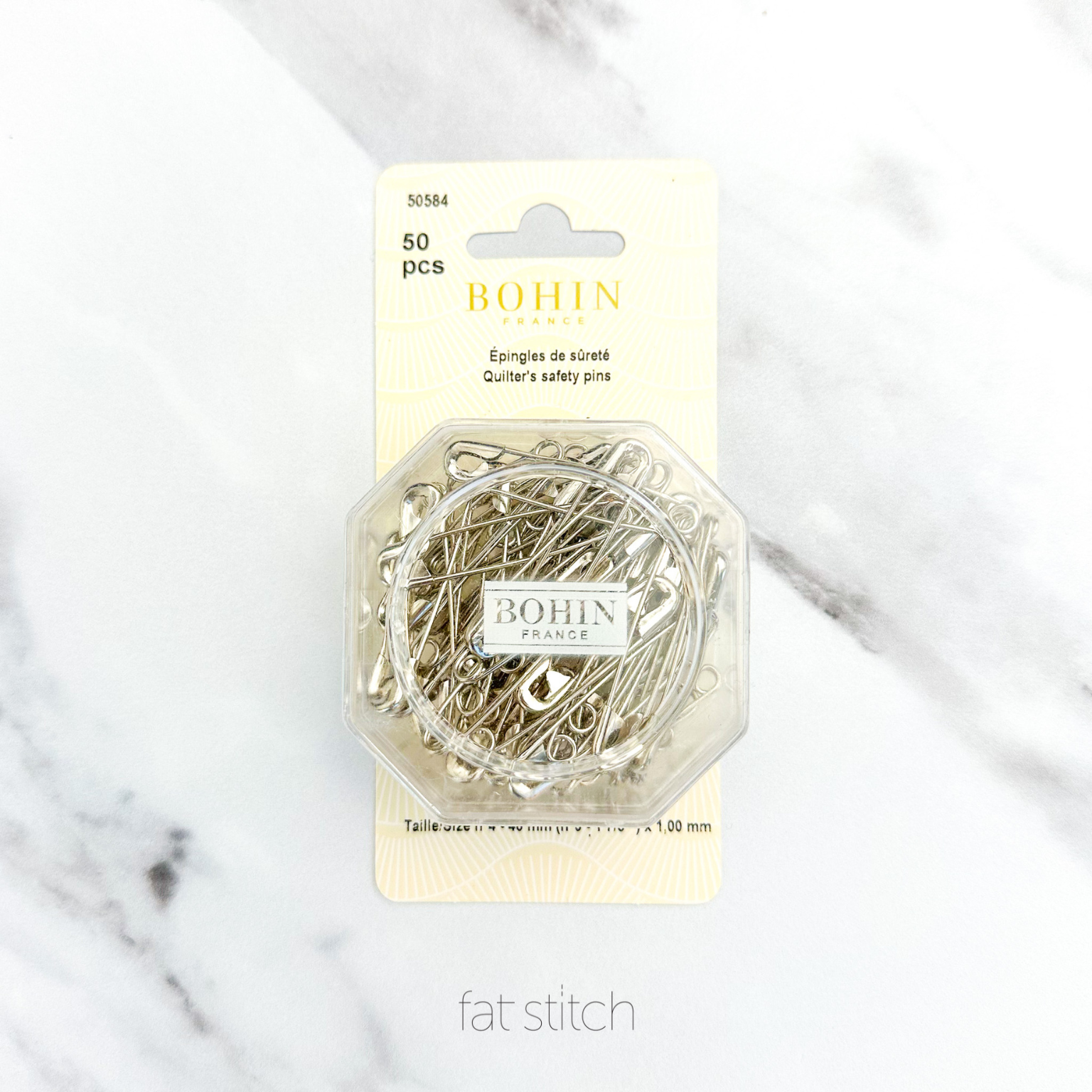 These safety pins allow you to hold all different fabrics or parts of your quilt together while you are quilting. Comes with 50 pins.