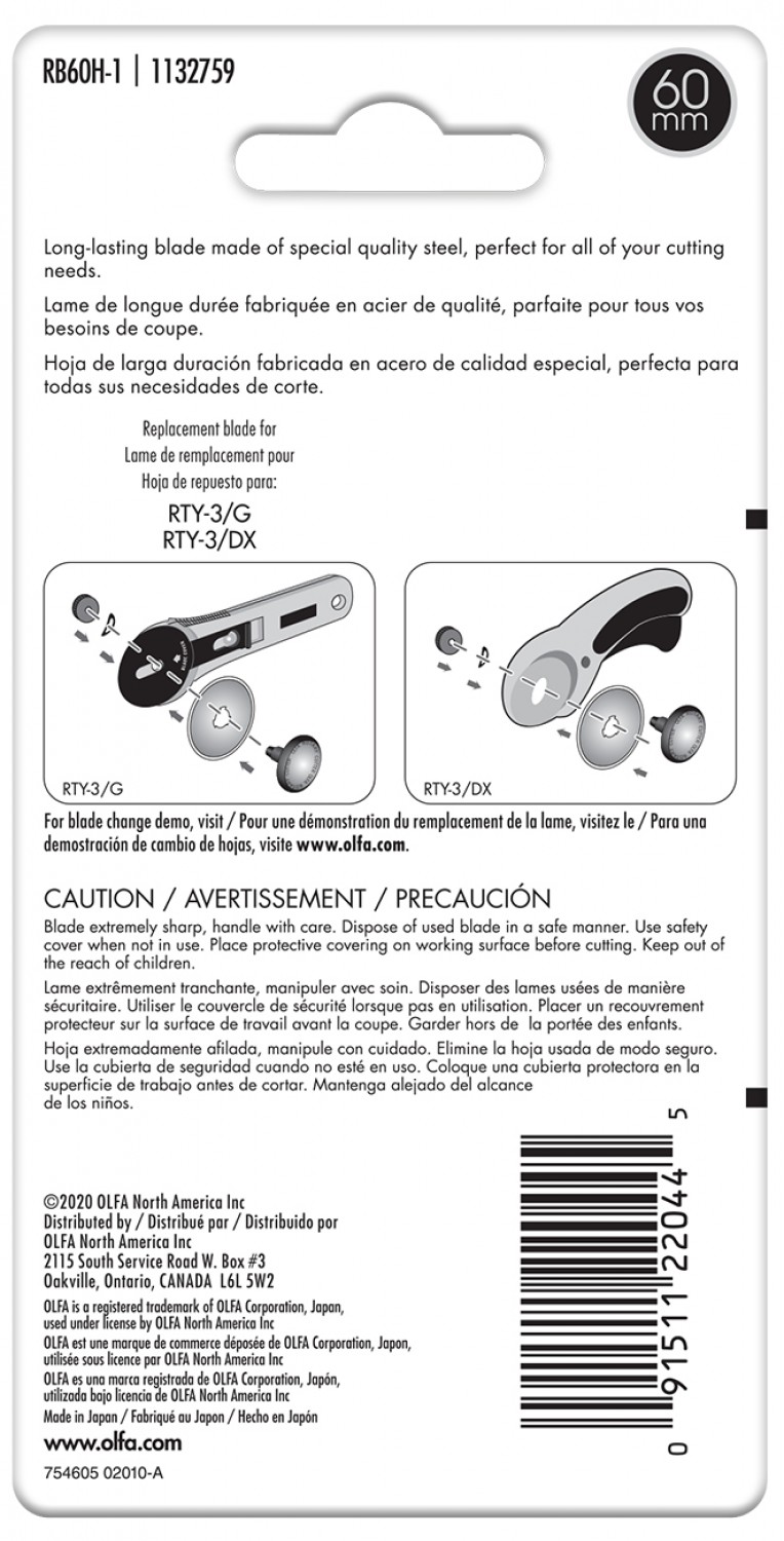 You create projects to last a lifetime and our new OLFA Endurance Rotary Blade cuts twice as long and fits all OLFA 60mm rotary cutters. It’s the perfect marriage of precision and quality that you expect from OLFA: it cuts effortlessly and retains its edge longer.