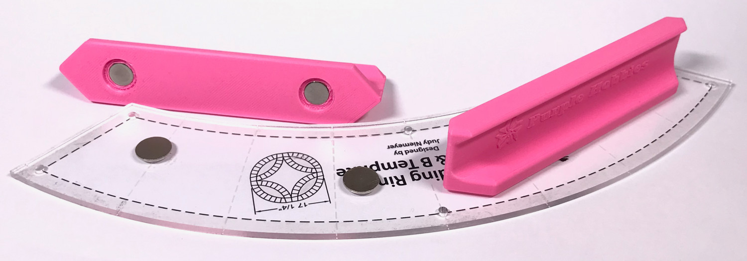-5%Protect your fingers from rotary blades! Position your fingers behind the ruler handle to keep them safe from rotary cutter accidents. Makes cutting with rulers fast and easy because it is so easy to lift and reposition the ruler. Magnetic Ruler Handles are removable and can be used with other rulers and templates. Four self-adhesive steel discs included to attach to your rulers. Additional self-adhesive steel discs available so you can use the handles with multiple rulers and templates. Excellent for use with longarm rulers. Sold as a set of two so you can use them together to safely trim corners.