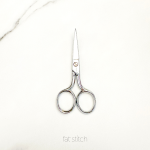 Gingher’s curved embroidery scissors feature a strong frame and slender blades ideal for cutting a single layer of fabric, multiple strands of thread and light needlework yarn. A double-plated chrome-over-nickel blade finish is both striking and durable.