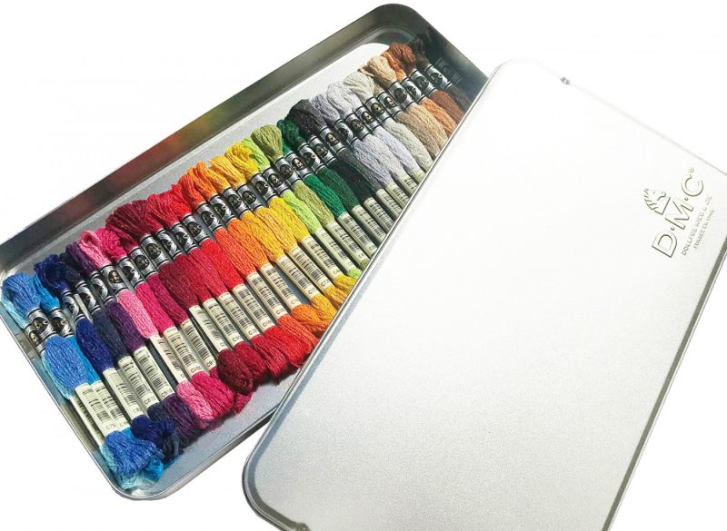 This exclusive tin includes 35 colors of Mouline Etoile. The ultimate gift for any crafter, the beautiful tin contains the entire range of our sparkly stranded cotton thread. Stamped with the DMC logo, this special tin also comes with two cross stitch and embroidery patterns.