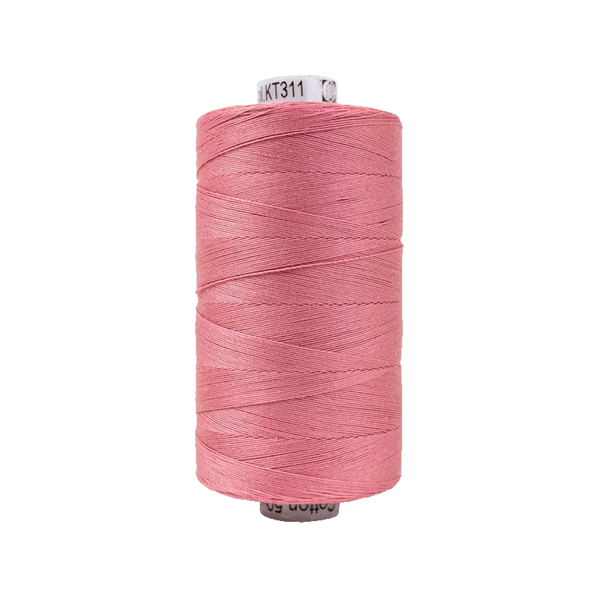 Carnation Pink – Wonderfil Konfetti Solid – 50wt 3/ply 100% Egyptian Cotton Thread – Low Lint – Large Spool 1094 Yards – #KT1-308
