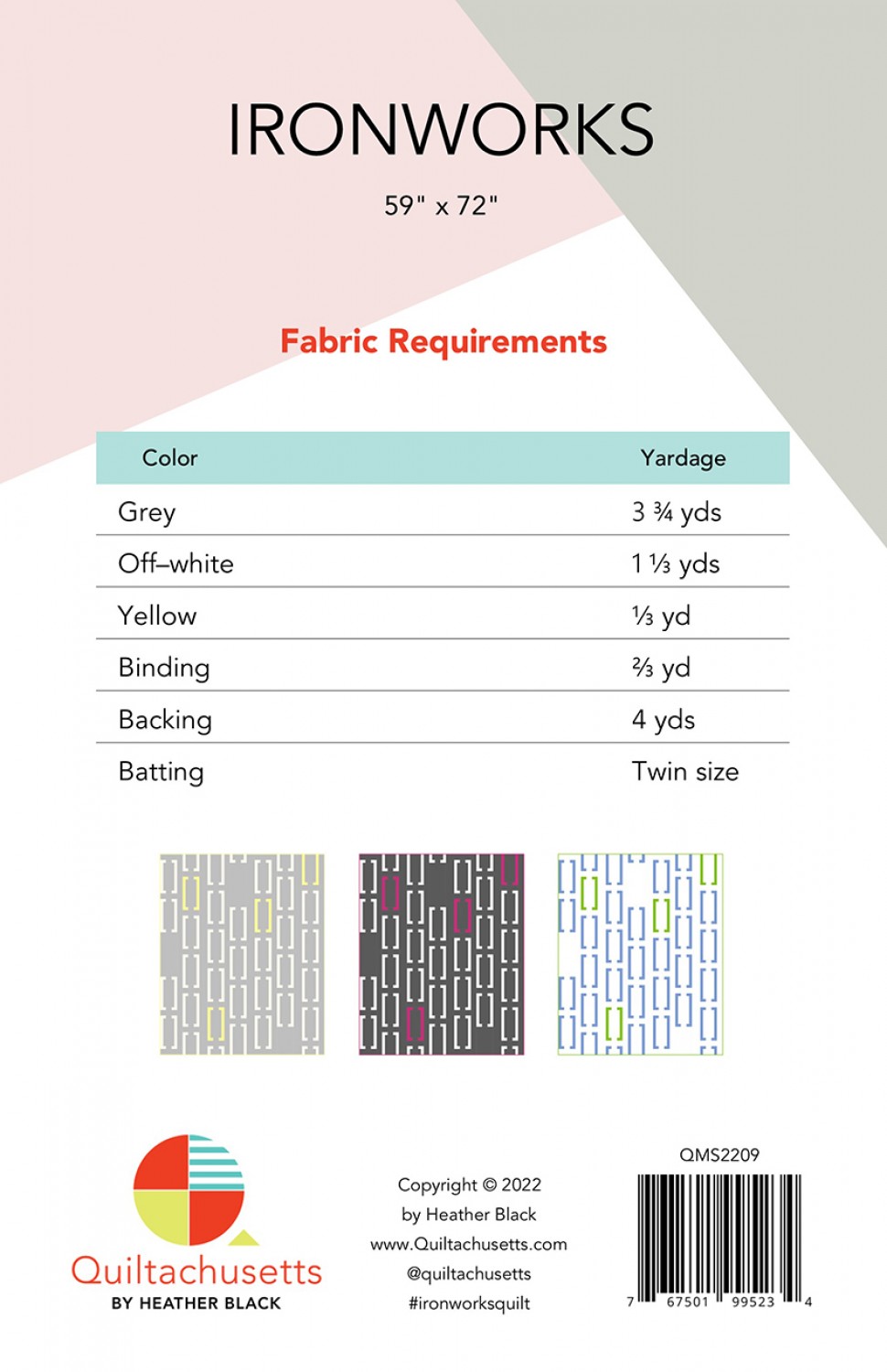 Decorative iron pieces, chain links, machinery, iron can be shaped and modeled into so many useful as well as beautiful things. This 9 page pattern features easy to follow instructions, full color diagrams and a coloring page. The finished quilt is 59” x 72” and is great for a throw or decorative quilt.