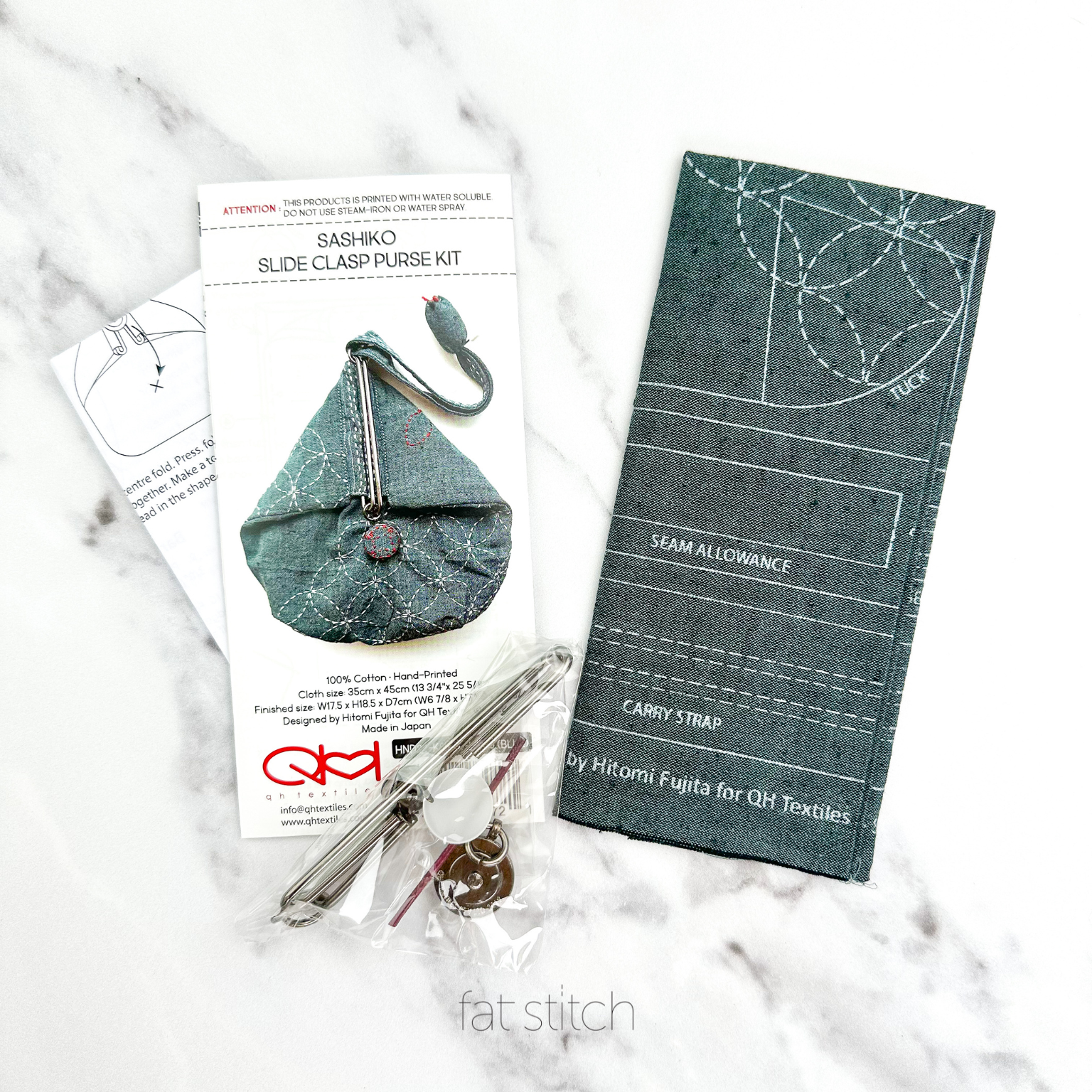 Weaving Sashiko KOKI Drawstring Bag Kit with Key Fob in Brown